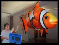 Globo metalizado o de pvc, con forma de pez Nemo, conducido con mando a distancia.
